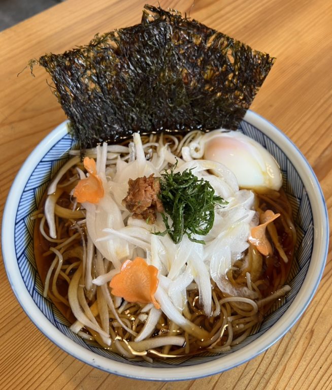 『飛島産 岩のり新玉梅蕎麦』・・・1400 円 4月1日より、今だけのメニューが増えました!! 岩のりを汁に浸して、新玉ねぎと一緒に 梅で味の変化を楽しんでみてください FacebookXBluesky 2026-04-01
